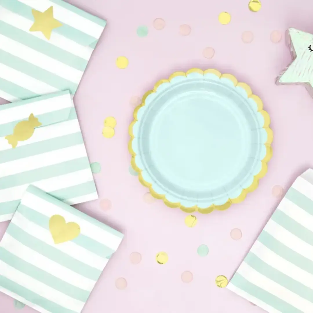 Ces assiettes en carton vert menthe permettent d’ajouter de la couleur et de l’harmonie à votre table, sans effort. Elles peuvent être assorties à des gobelets, serviettes, pailles ou autres éléments de décoration dans les mêmes tons pour créer une ambiance cohérente et stylée.