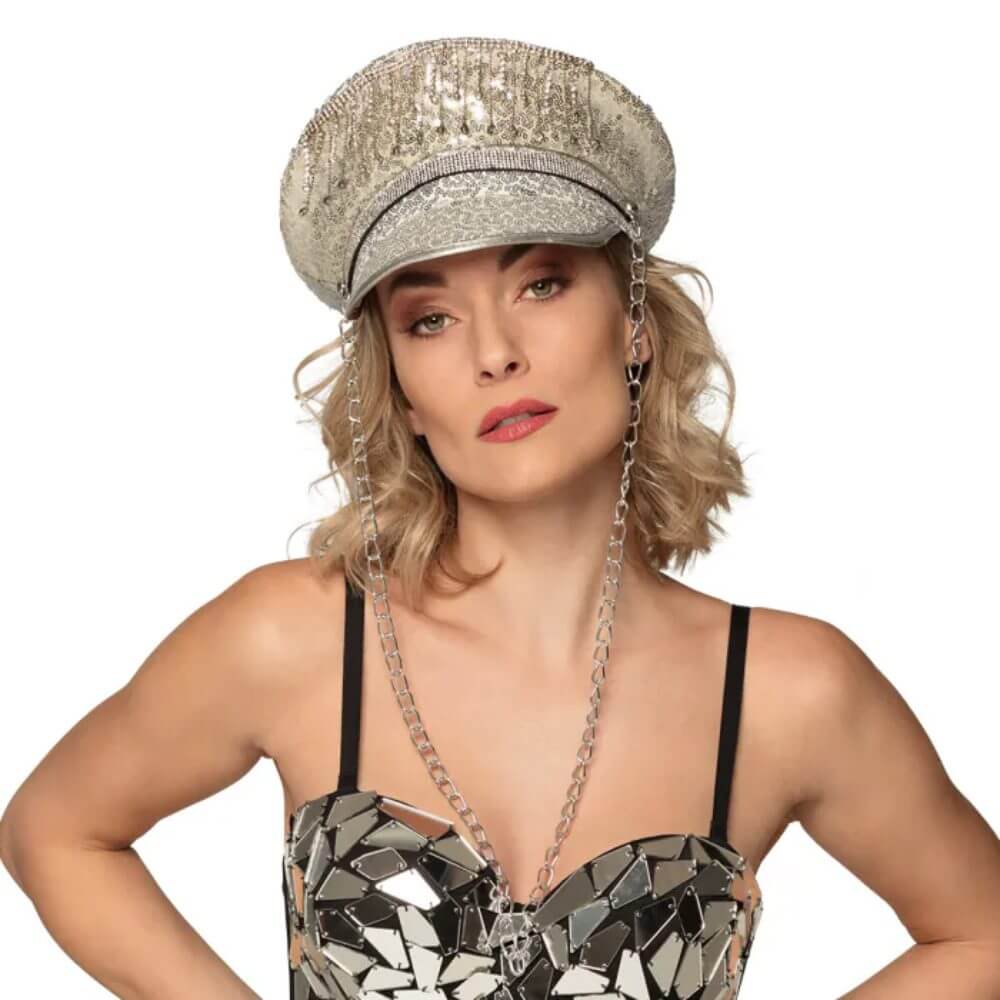 Casquette pailletée argent