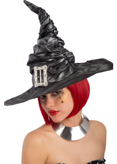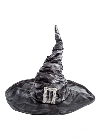 Chapeau de sorcière noir en tissu avec boucle argenté H.42cm
