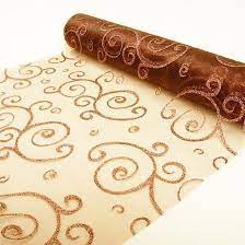 Chemin de table organza avec arabesques pailletées de 36cmx5m.