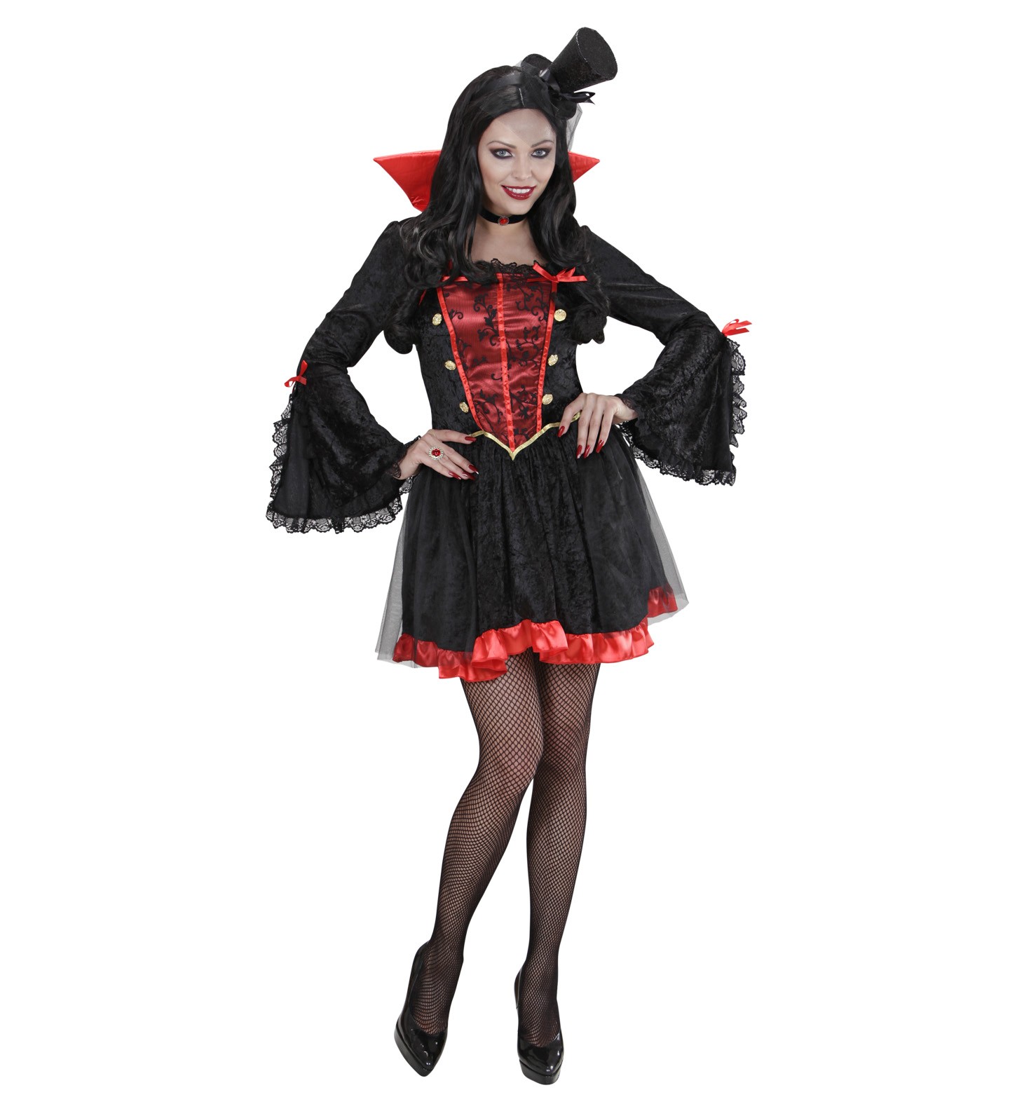 Commandez dès maintenant et préparez-vous à révéler votre côté sombre avec ce déguisement de Vampiresse en noir, rouge et or.