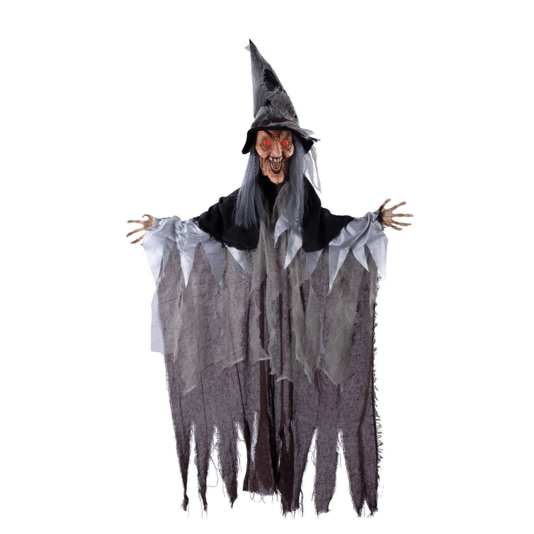 Plongez vos invités dans un cauchemar enchanté avec cette sorcière animée à suspendre.