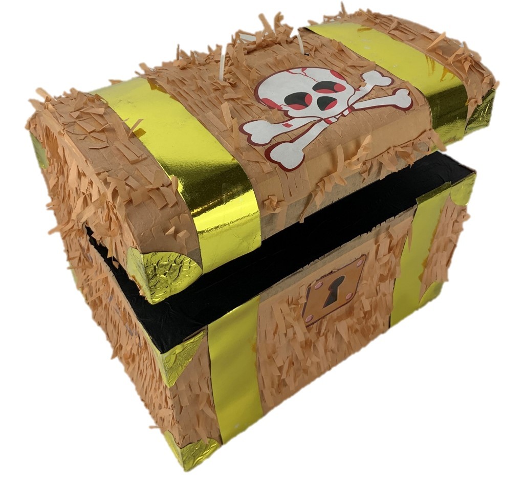 Cette pinata est en forme de coffre au trésor de pirate. Bandez les yeux du joueur et laissez le tenter d’en venir à bout !