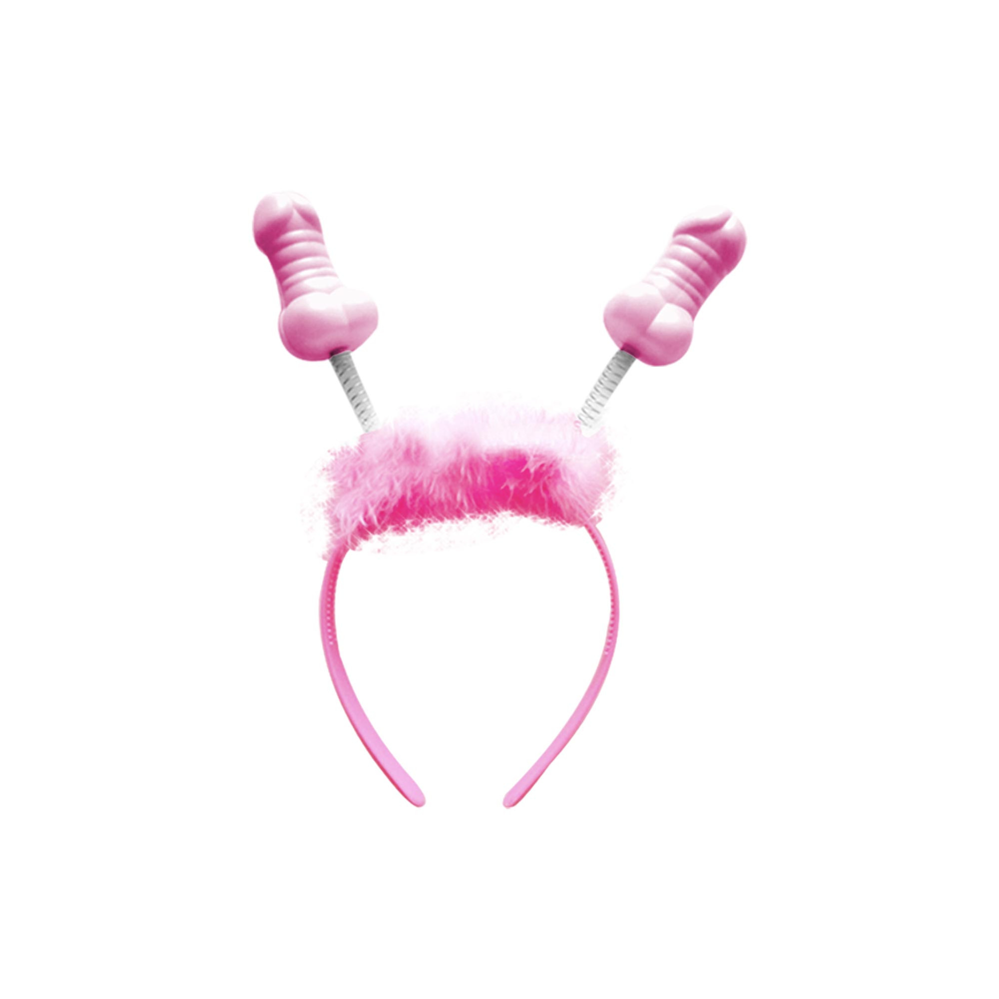 Serre tête de couleur rose avec fourrure et antennes zizi avec ressorts.